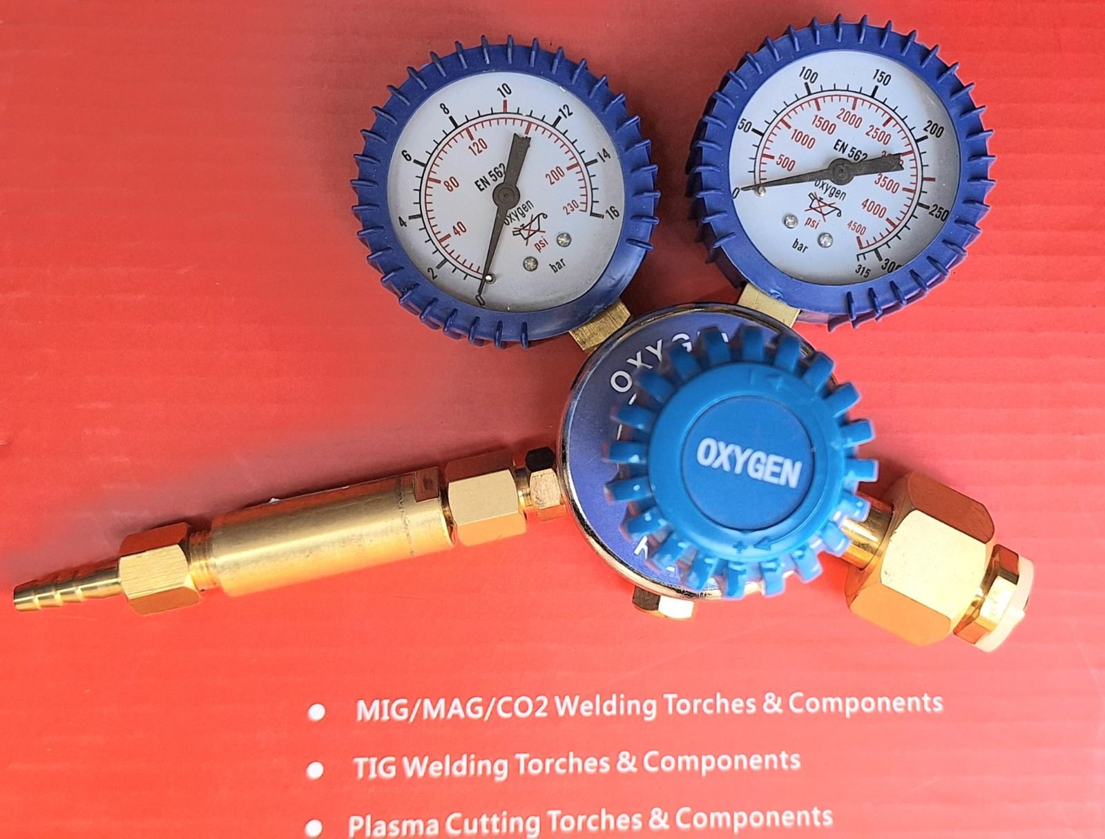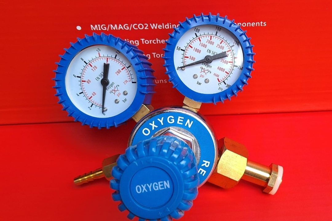 Редуцир-вентил Кислород 10bar изходящо налягане, часовници диаметър 63мм,екранирани с гумен защитен протектор.